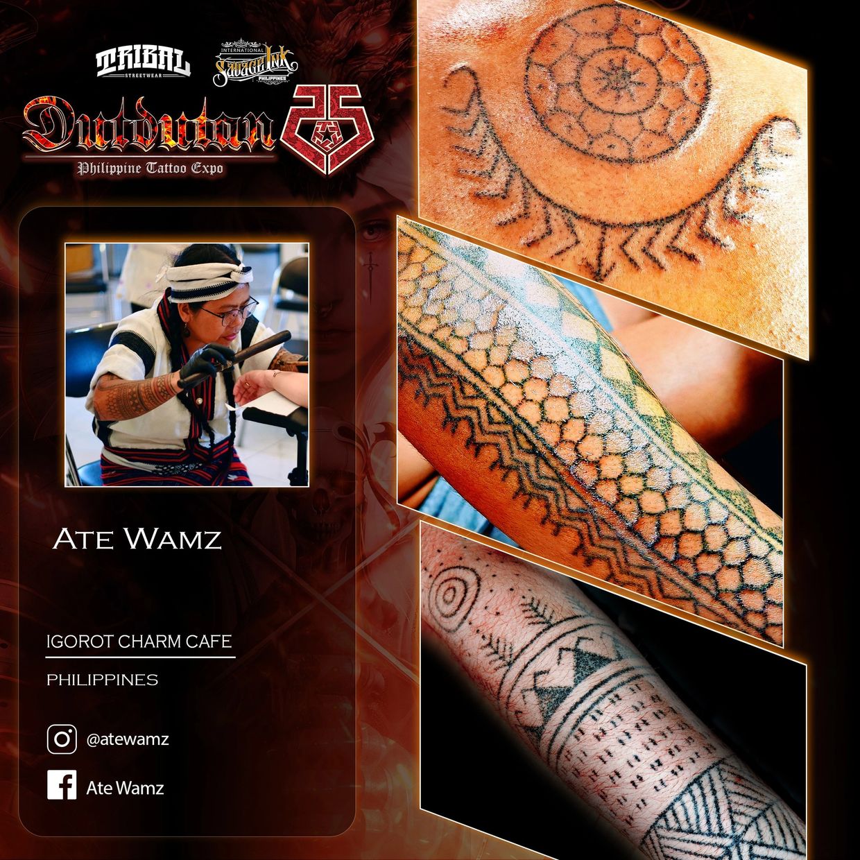 From the stunning landscapes of Benguet & Tinoc Ifugao in the Cordillera region, 𝐀𝐭𝐞 𝐖𝐚𝐦𝐳 is a respected Kalanguya/Kankanaey artist, blending the rich traditions of her culture into each intricate tattoo.